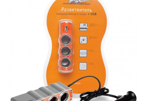 - Прикуриватель-разветвитель на 3 гнезда + USB